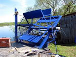 Гребные колеса поставил на место. Готовые фермы-лыжи также приварены. Всё это благополучно поднято с огорода краном и переброшено через забор