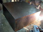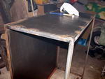 - только варю остов из уголка. Листы металла вырезаю по размеру и обшиваю им остов с посадкой на винты с потайными головками через каждые 4 см.