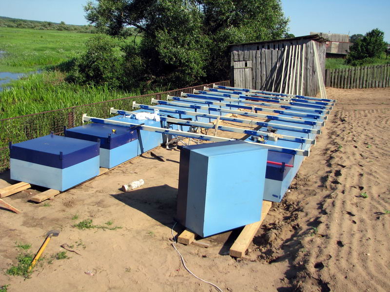 всей конструкции. В гараже готовятся опять-же "элементы" будущих ферм. Все элементы сварятся весной на месте друг с другом и приварятся
