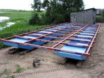 (берегом) по бокам судна будут приварены фермы. Т.к. понтоны не являются несущими. Всё это, конечно, коряво и неправильно, и будет тормозить судно, но такова была задумка