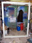 Тут-же проход в кладовку. Здесь хранится всё - лодка ПВХ и мотор к ней, стульчики и стол, коптильня, и пр., стоит газовая печка жидкостного