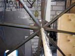Всё отцентровано на токарном станке. Спицы выполнены из уголка и крепятся к шайбам болтами. На последнем фото первая