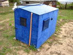 к зиме, осенью, укрою чем нибудь посолидней. Как минимум - покрашу, как защиту от ультрафиолета.... Фанера лежит на каркасе из профилированных труб 20х20х1 (как и весь каркас домика) на клею-герметике и прикручена саморезами изнутри.