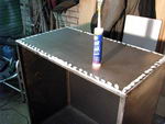на каркас. К каркасу приварены с внутренней стороны металические уголки, через которые фанера притягивается к каркасу саморезами.