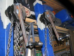 вертикальные профильные трубы (80х80х4). Около верхнего края этих труб приварены цепные тали в переделанном виде. Подъем и опускание рам с гребными