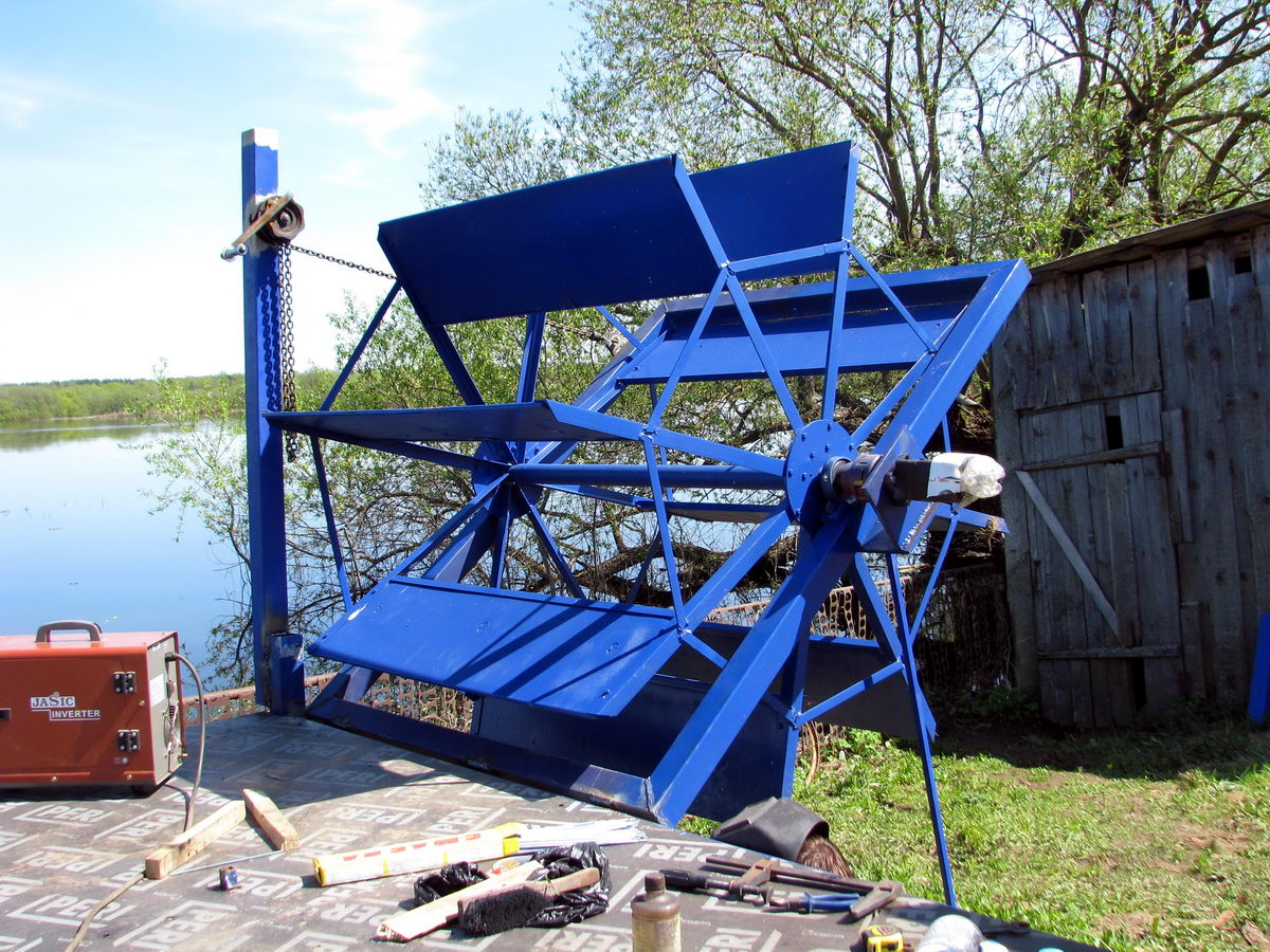 Каждое гребное колесо устанавливается в собственную раму, сваренную из профильной трубы 80х80х4
