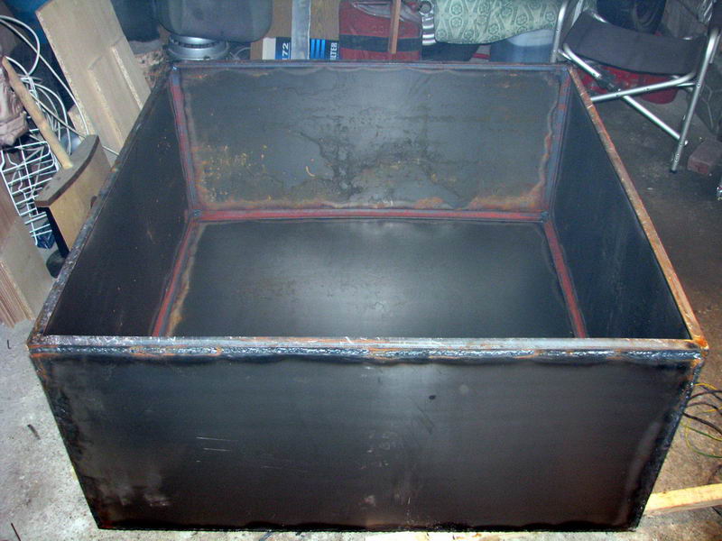 размер делаю 1м х 1м х 0.55м. Объем сварочных работ уменьшаю до минимума (ну не сварщик я!!, по крайней мере, чтоб варить герметичные швы)