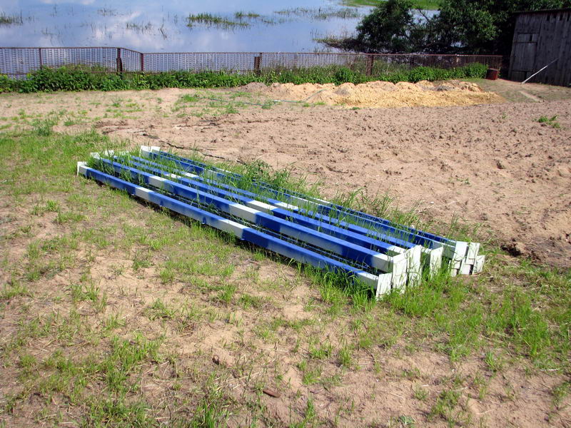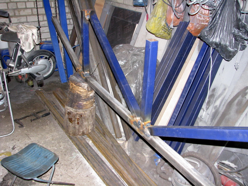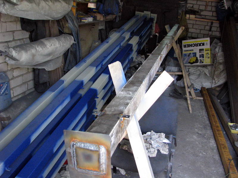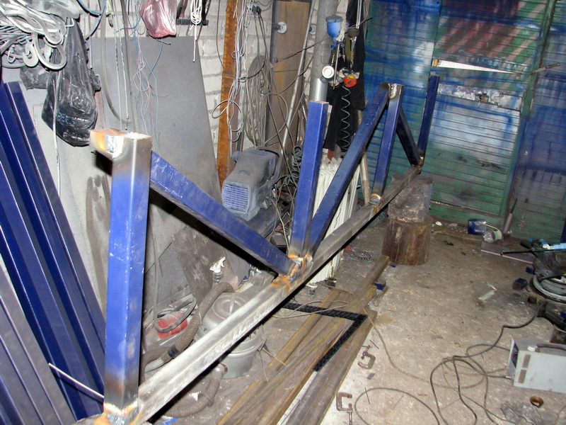 всей конструкции. В гараже готовятся опять-же "элементы" будущих ферм. Все элементы сварятся весной на месте друг с другом и приварятся