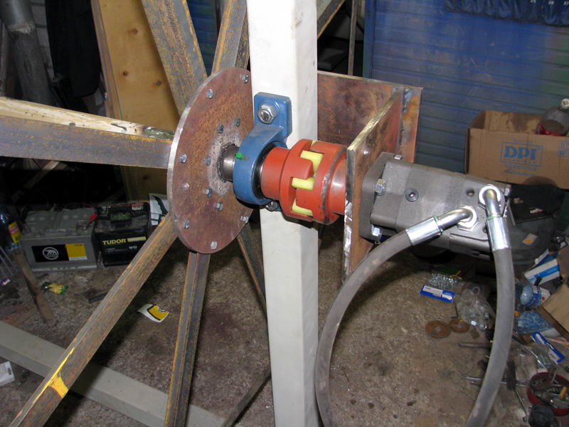 Установил гидромотор, который через муфту будет вращать гребное колесо.(Изготовка этих муфт под мой заказ одна из фирм в Минске, не буду показывать пальцем,