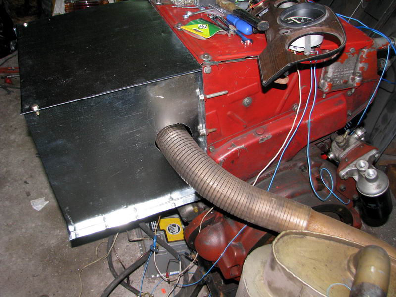 Для отвода охлаждающего воздуха за пределы будущего подкапотного пространства, был сооружен вот такой воздуховод. В дальнейшем он был модернизирован: