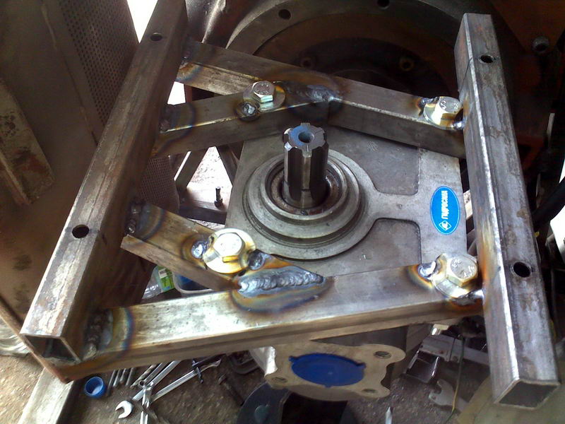 Масляный насос установлен на сварную раму (по месту). Применен НШ-100, после испытаний заменен на НШ-75, без переделки крепежа.